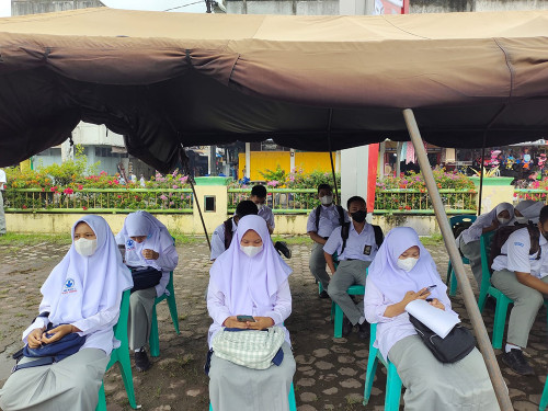 Pelaksanaan Kegiatan Vaksin Siswa Sman 2 Padangsidimpuan Di Lapangan Halaman Bolak