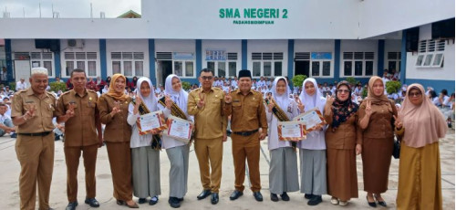 Penyerahan Piagam Penghargaan sekaligus Penyematan Selempang Oleh KADISDIK Kota Padangsidimpuan kepada Siswa SMA Negeri 2